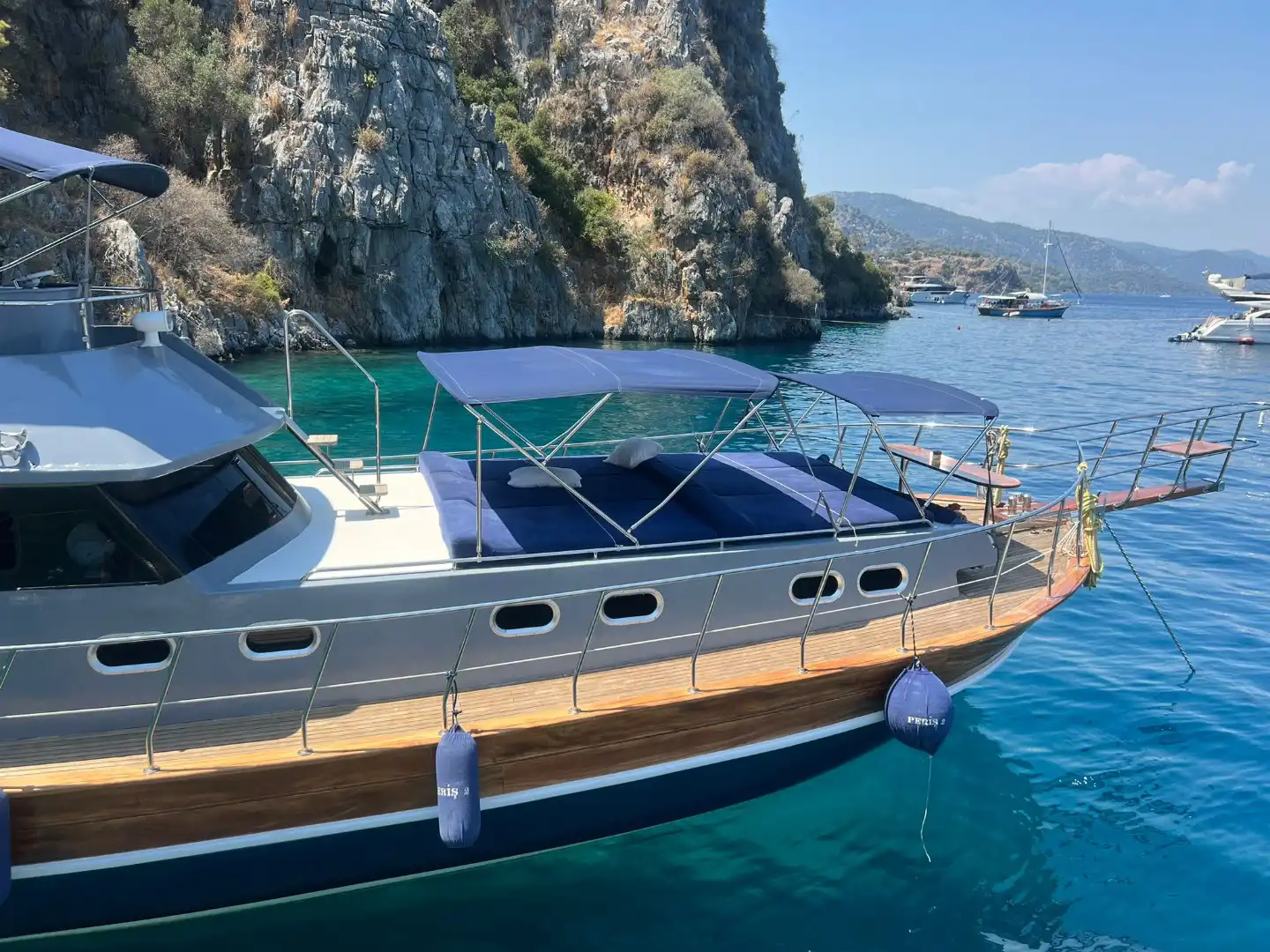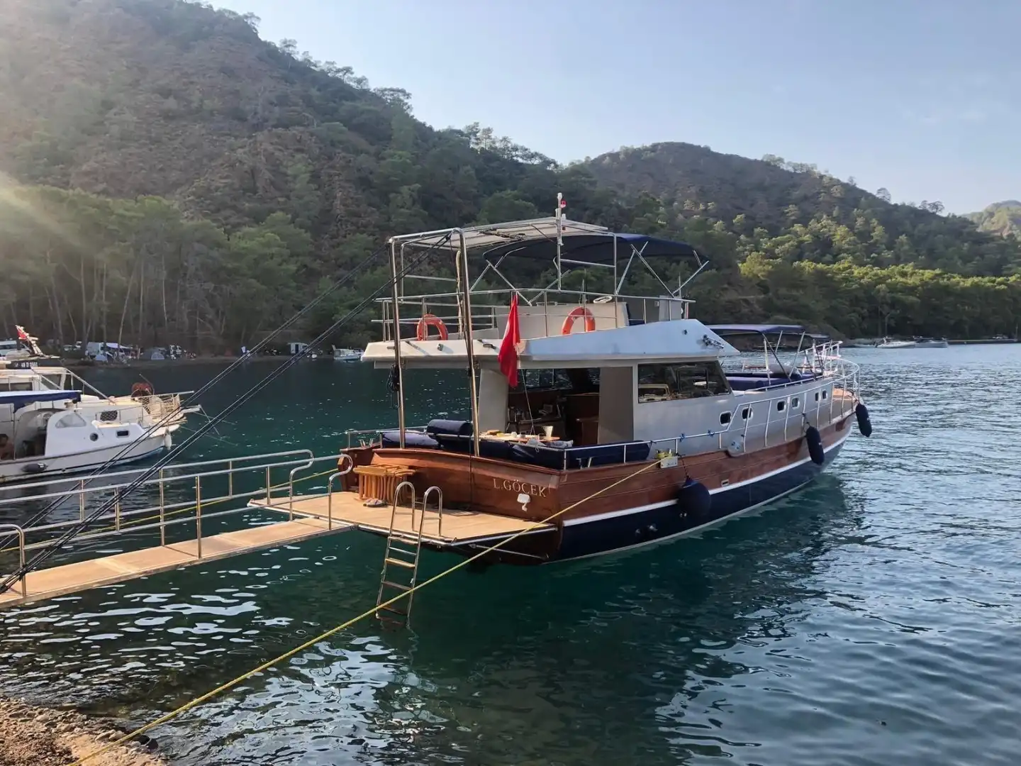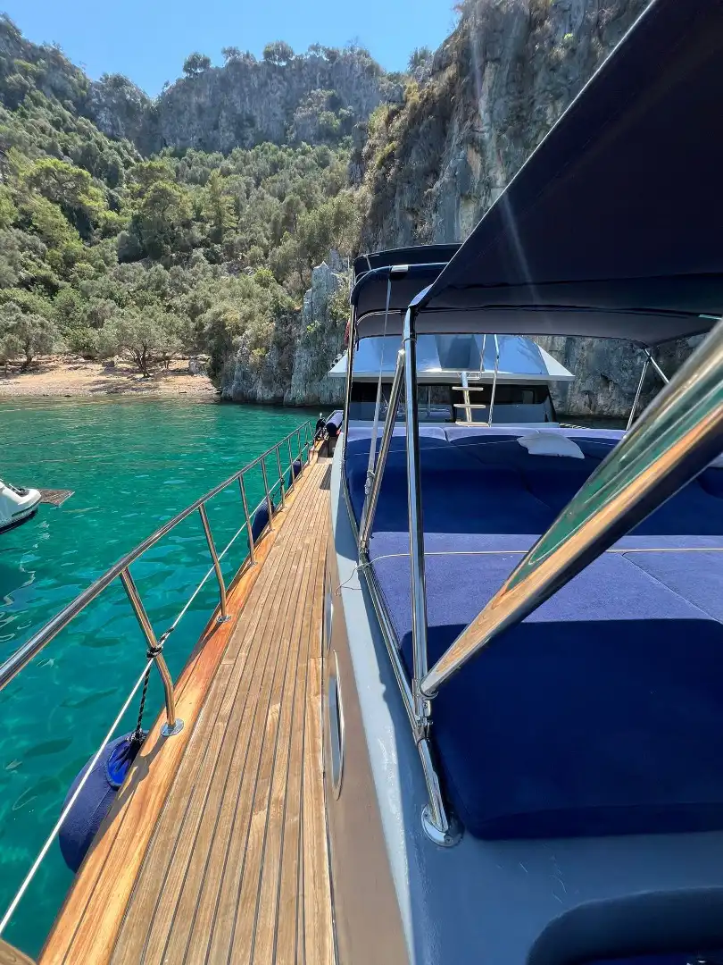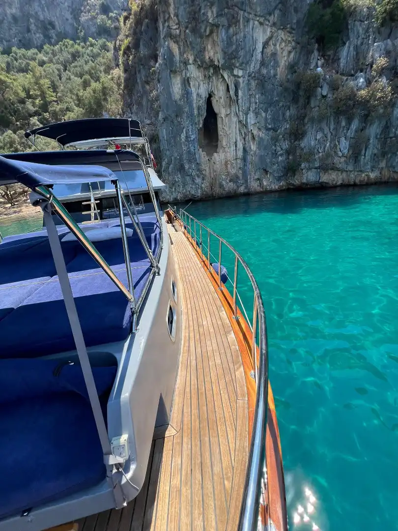 Наслаждайтесь Гёджеком до заката! Эта 18-метровая яхта предлагает продленный дневной тур (10:00 – 20:00) и посещение 3 бухт в день.