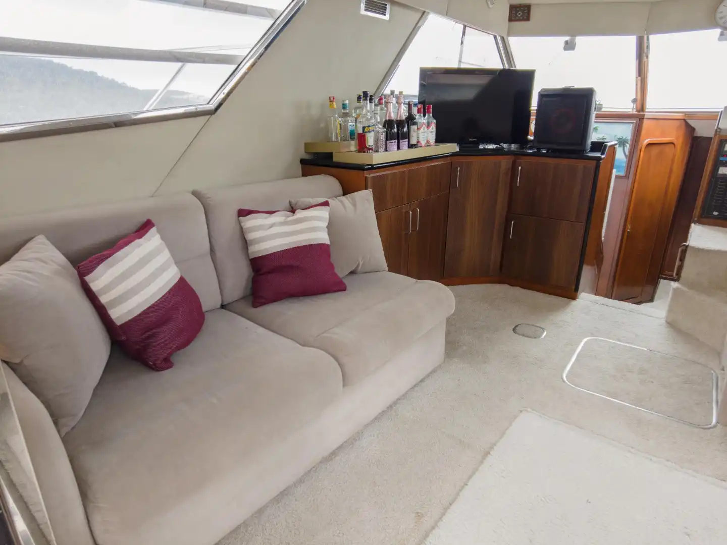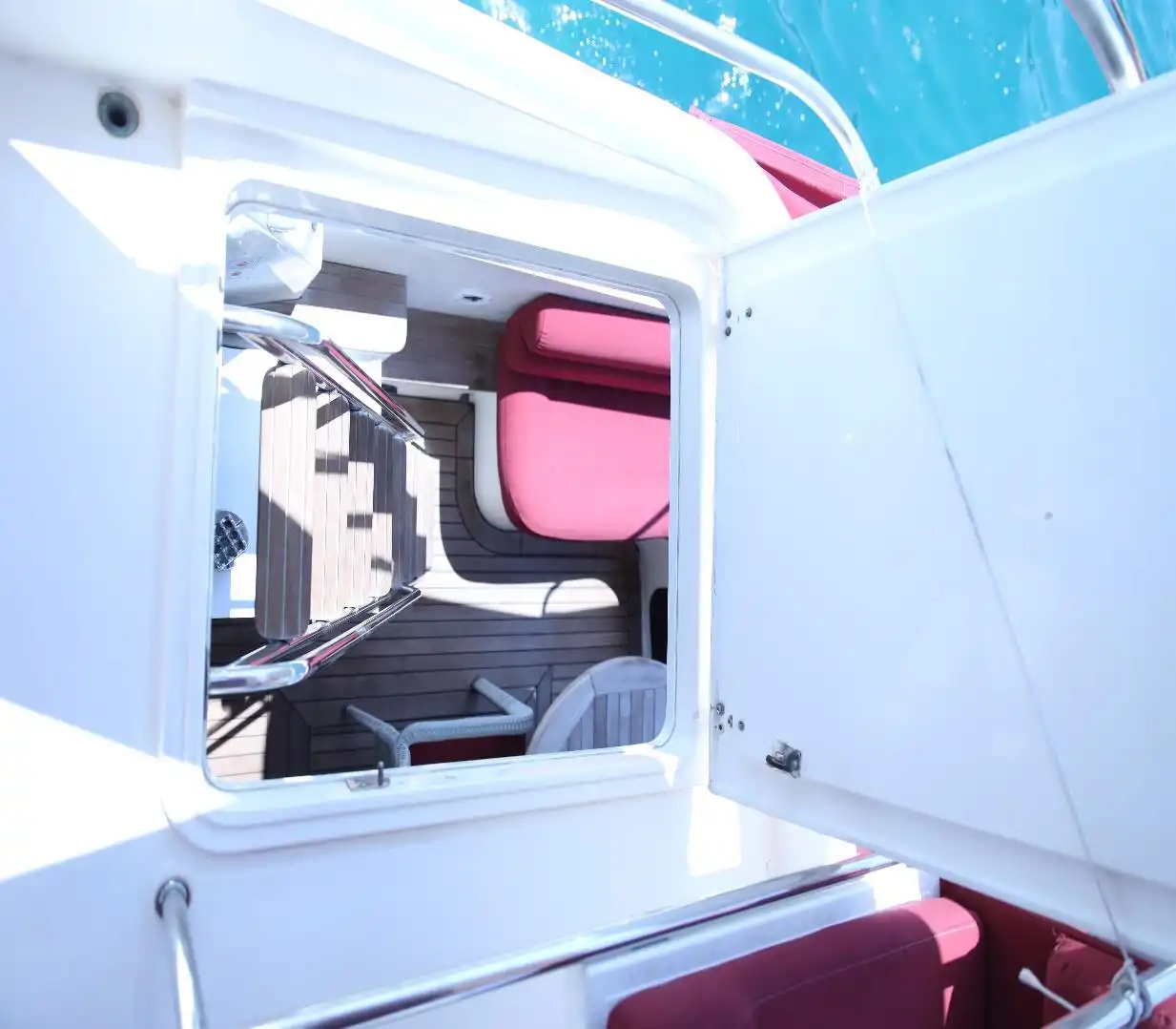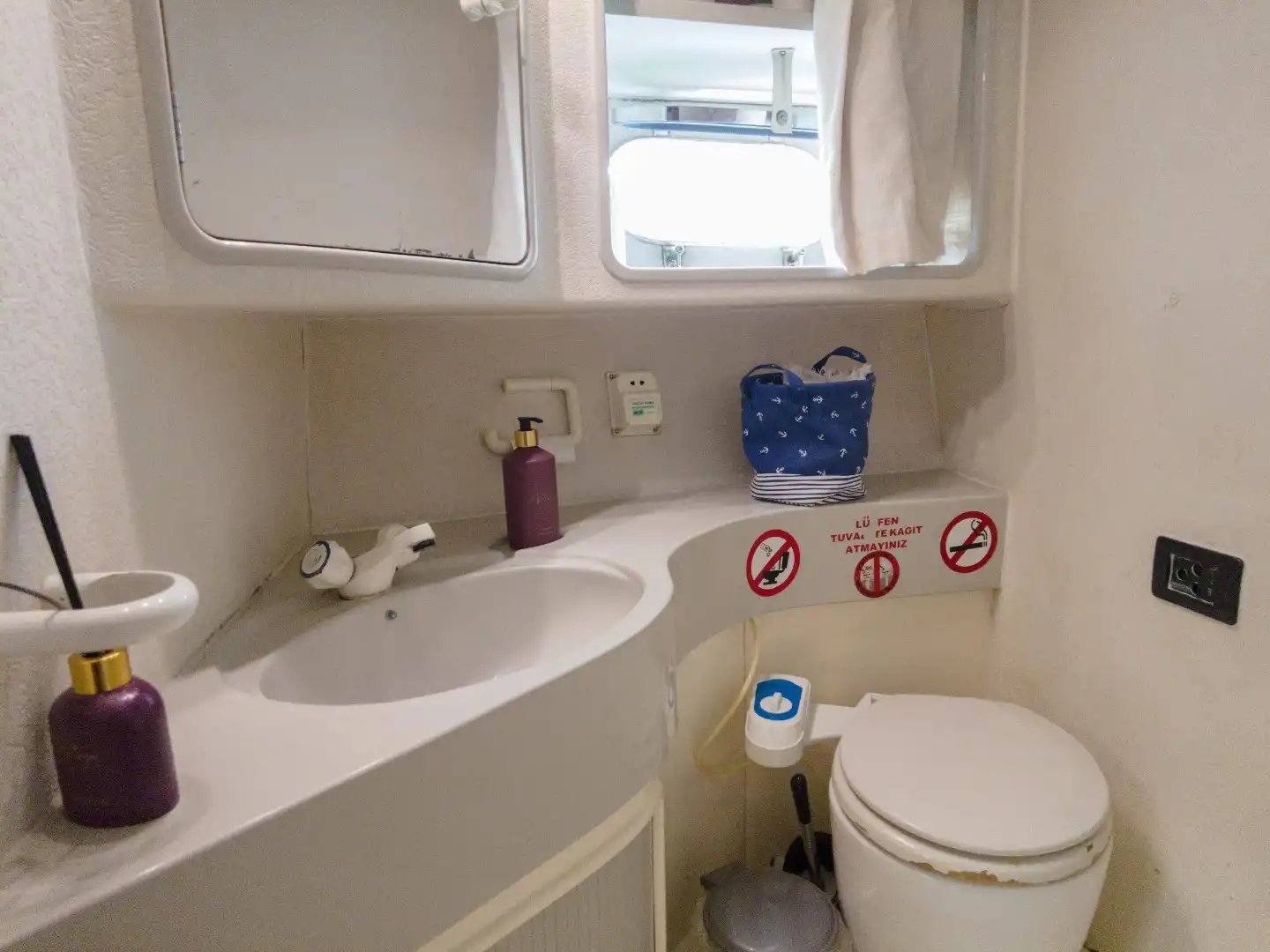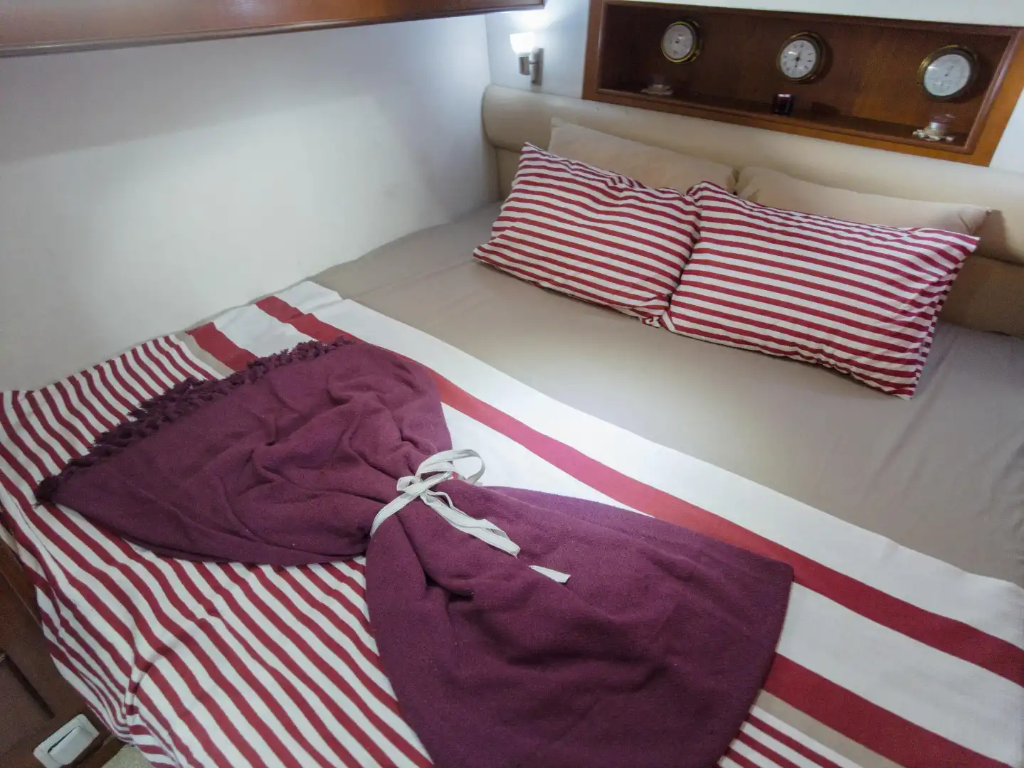 Bodrum'un turkuaz koylarında 17.5 metre Fairline 55 motoryat ile lüks bir deniz tatili yaşayın. 1 double ve 2 twin yataklı olmak üzere 3 klimalı kabiniyle 6 kişiye konaklamalı, günlük turlarda 12 kişiye kadar hizmet vermektedir. 2x435 HP Caterpillar motorlar güçlü ve akıcı bir seyir sunarken, 16 KW Onan jeneratör kesintisiz konfor sağlıyor. 4.60 metre genişliğindeki zarif İngiliz tasarımı, şık iç mekanları ve geniş güverte alanlarıyla Fairline 55, performans ve estetiği bir arada sunuyor. Kaptan ve gemiciden oluşan 2 kişilik profesyonel mürettebat eşliğinde Bodrum'un saklı koylarını keşfedin.
