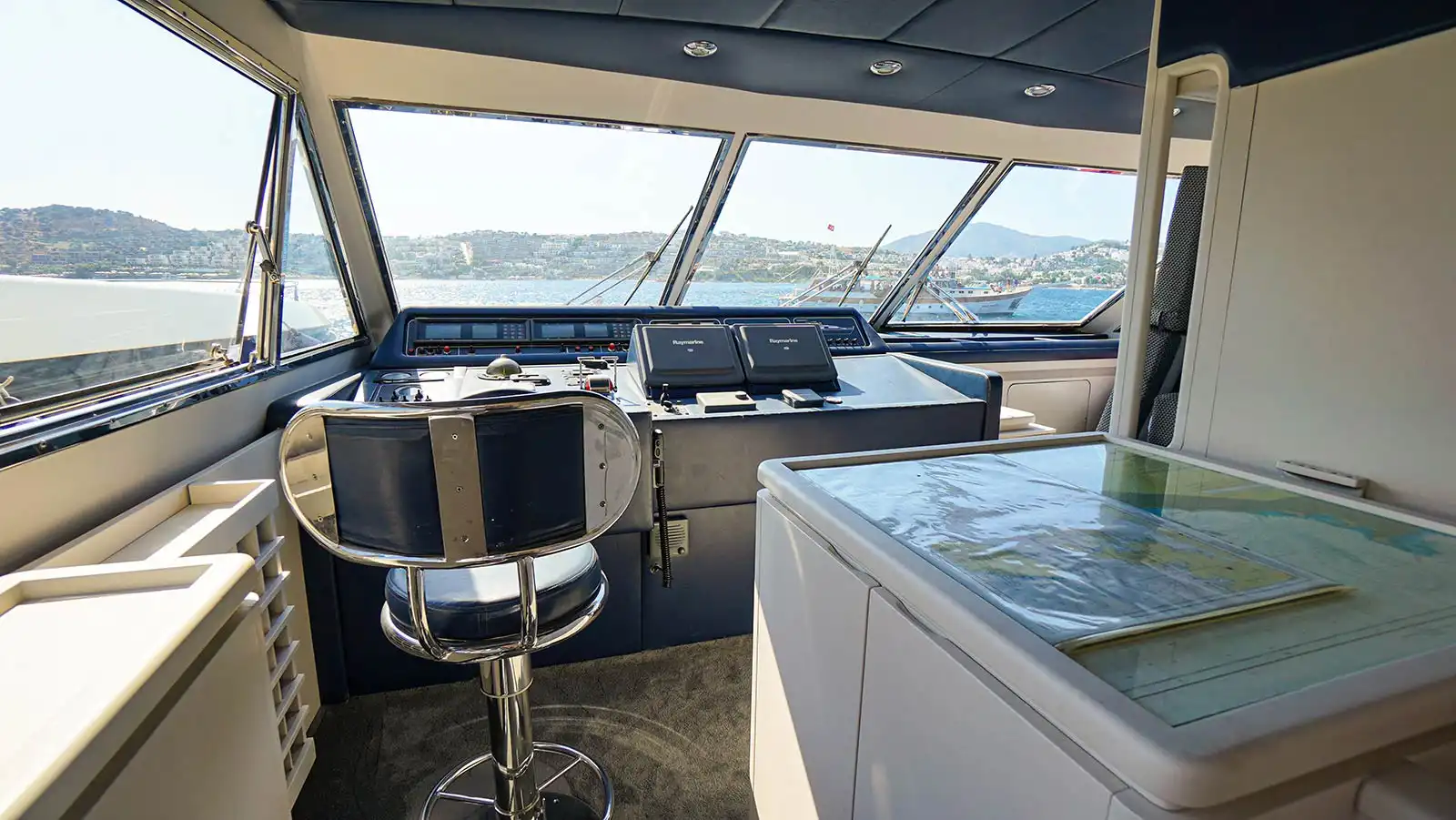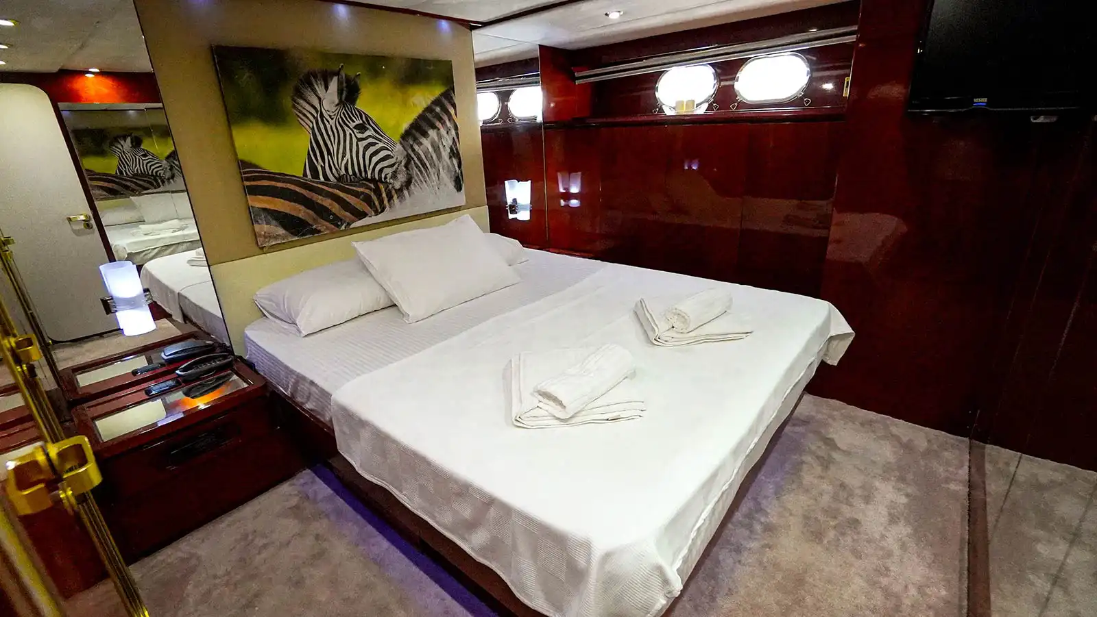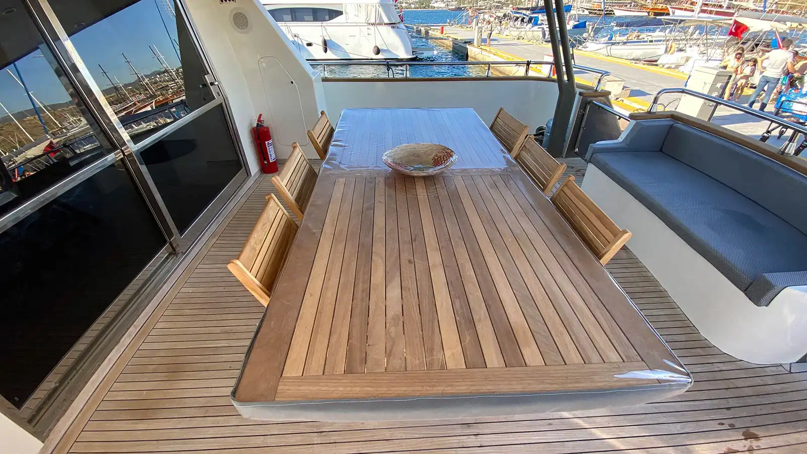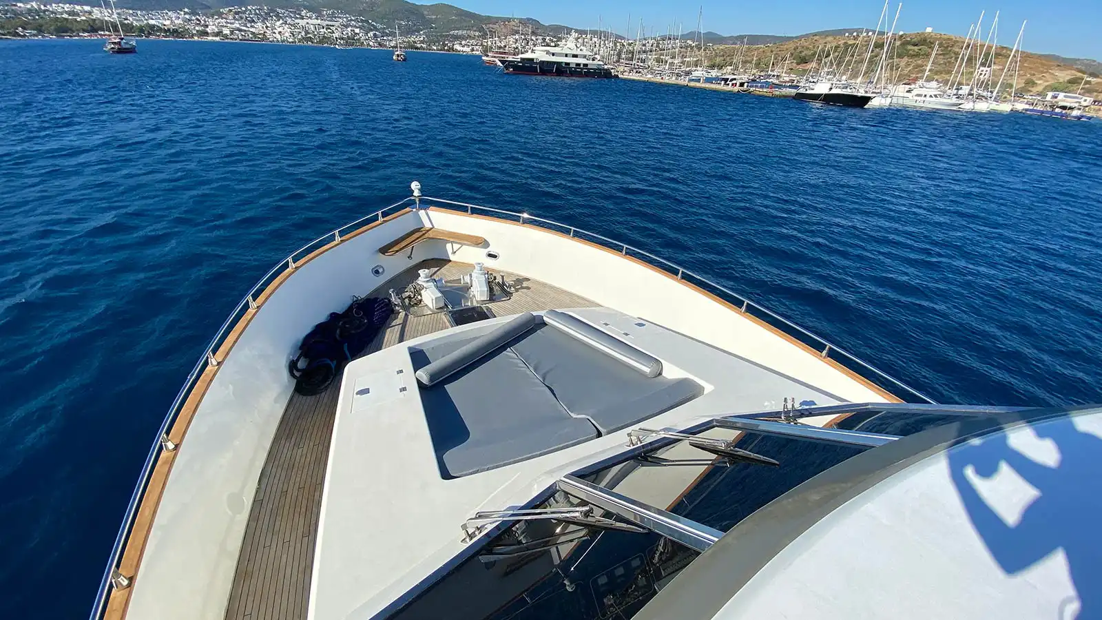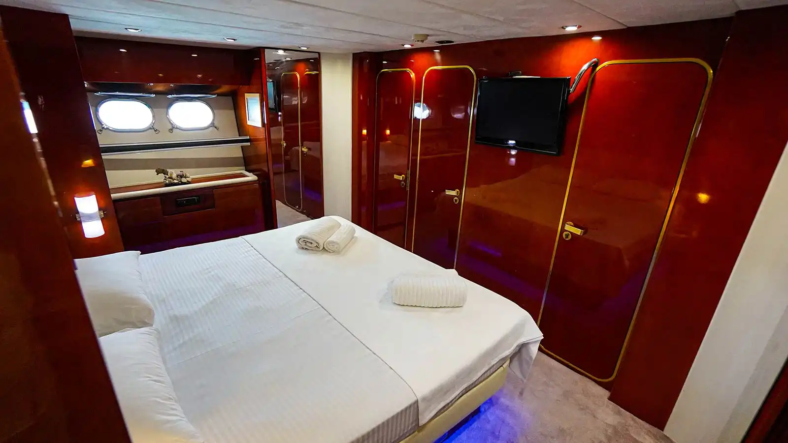 2000 yapımı ve 2019'da kapsamlı renovasyondan geçen bu 26 metre lüks motoryat, zarif tasarımı ve şık yaşam alanlarıyla motor yat deneyimini en üst seviyeye taşıyor. 6 metre genişliğindeki gövdesiyle 2 master ve 2 triple olmak üzere 4 klimalı kabinde her birinde özel duş ve WC bulunmaktadır. Salonda LCD TV, DVD oynatıcı ve müzik seti mevcuttur. Türk sularında geçerli Wi-Fi internet hizmeti sunulmaktadır. Telsiz, GSM telefon ve seyir cihazlarıyla güvenli seyir sağlanan tekne, Bodrum, Marmaris, Fethiye ve Göcek gibi en popüler mavi tur rotalarında profesyonel mürettebat eşliğinde hizmet vermektedir.
