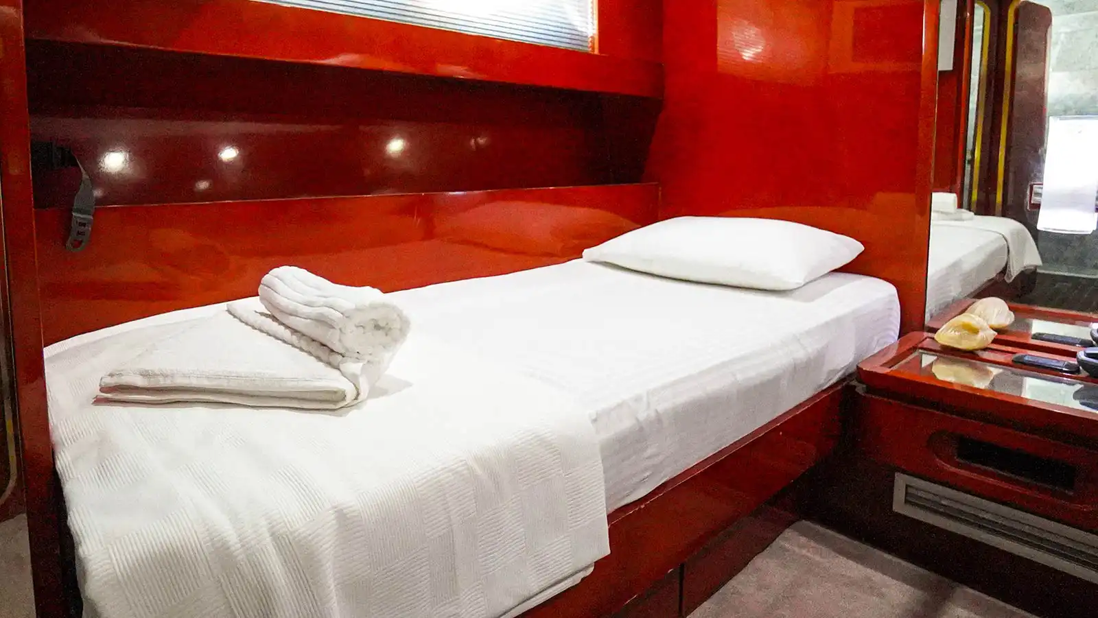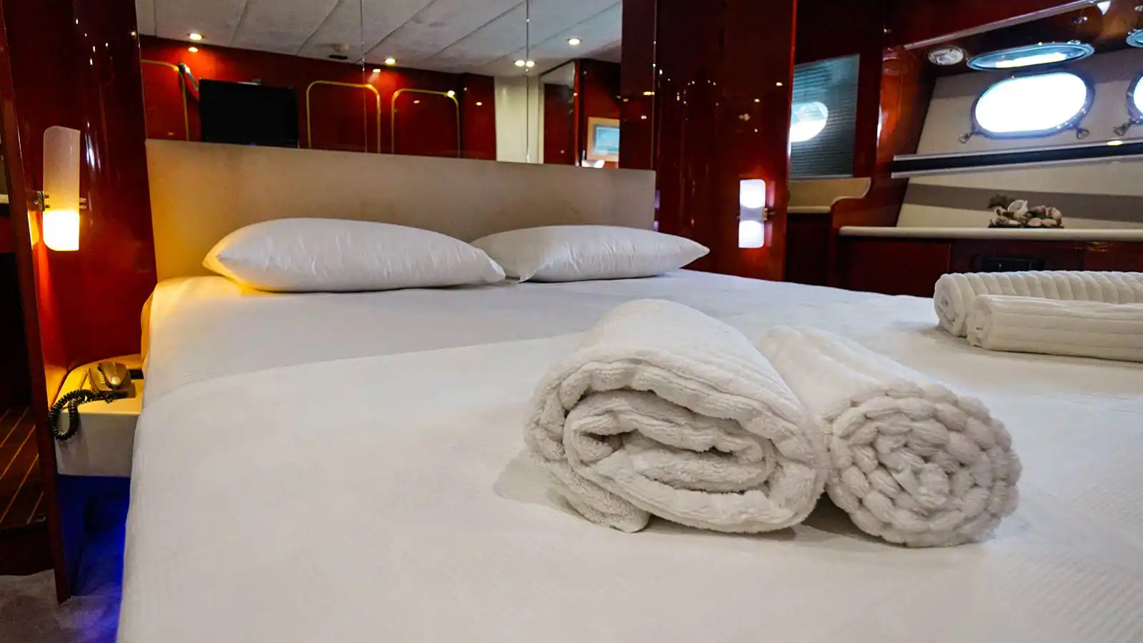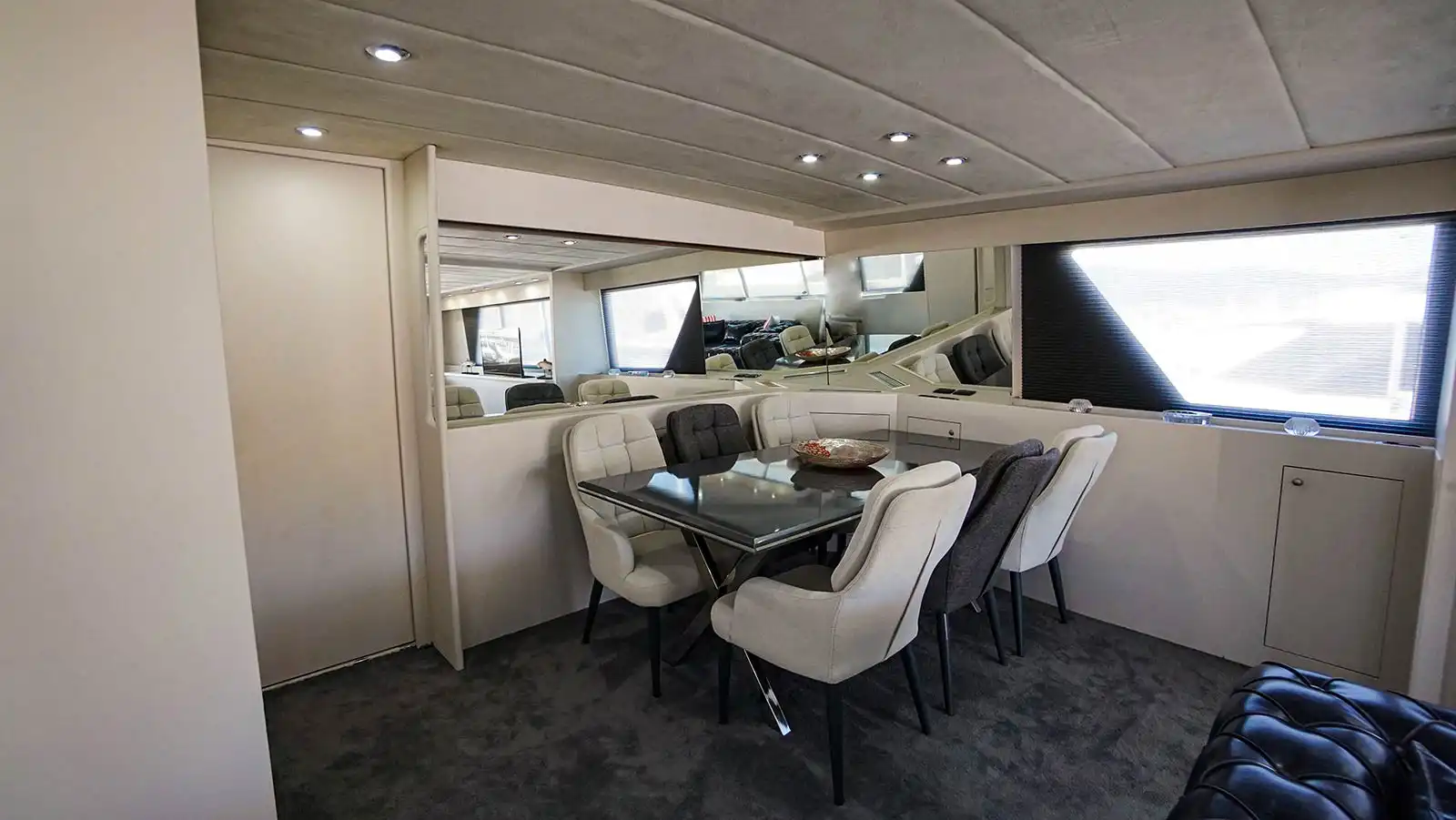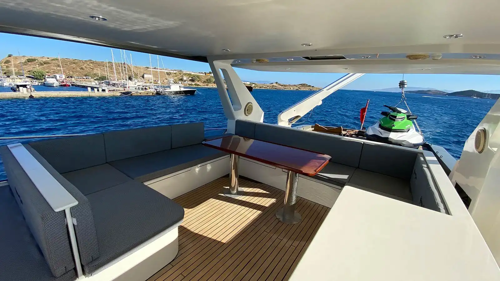 2000 yapımı ve 2019'da kapsamlı renovasyondan geçen bu 26 metre lüks motoryat, zarif tasarımı ve şık yaşam alanlarıyla motor yat deneyimini en üst seviyeye taşıyor. 6 metre genişliğindeki gövdesiyle 2 master ve 2 triple olmak üzere 4 klimalı kabinde her birinde özel duş ve WC bulunmaktadır. Salonda LCD TV, DVD oynatıcı ve müzik seti mevcuttur. Türk sularında geçerli Wi-Fi internet hizmeti sunulmaktadır. Telsiz, GSM telefon ve seyir cihazlarıyla güvenli seyir sağlanan tekne, Bodrum, Marmaris, Fethiye ve Göcek gibi en popüler mavi tur rotalarında profesyonel mürettebat eşliğinde hizmet vermektedir.