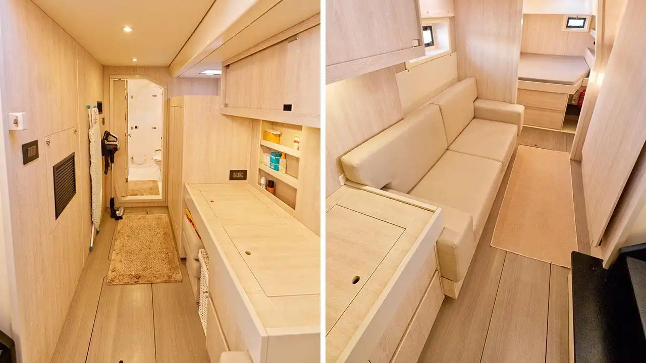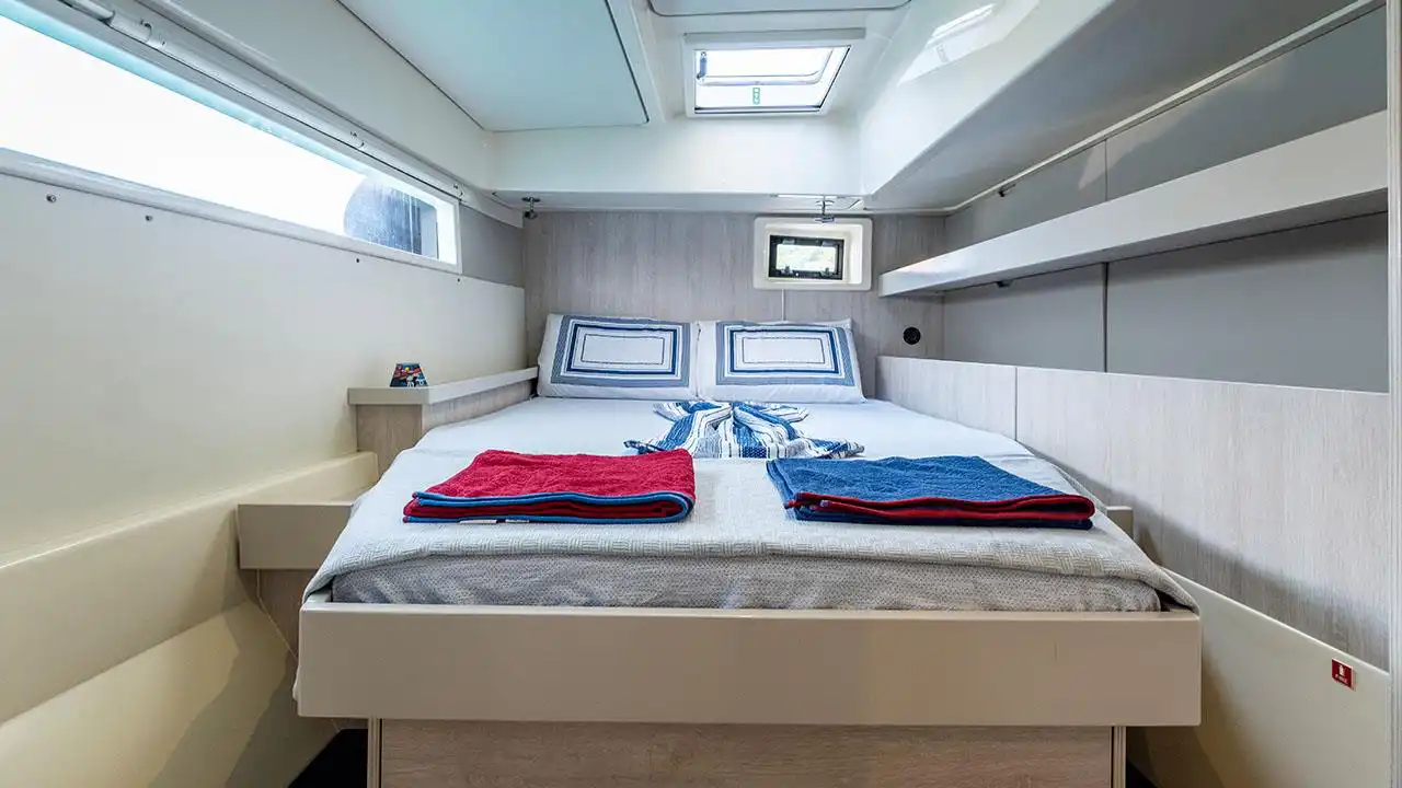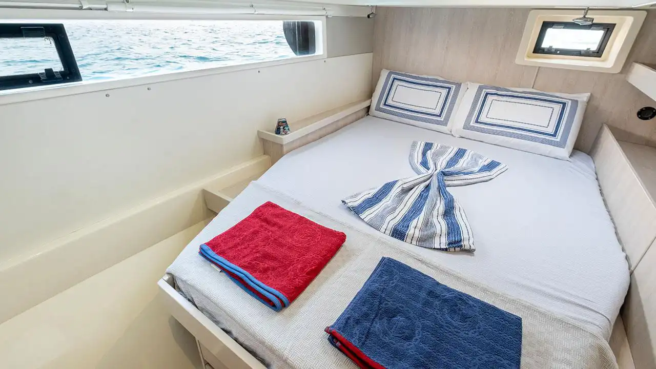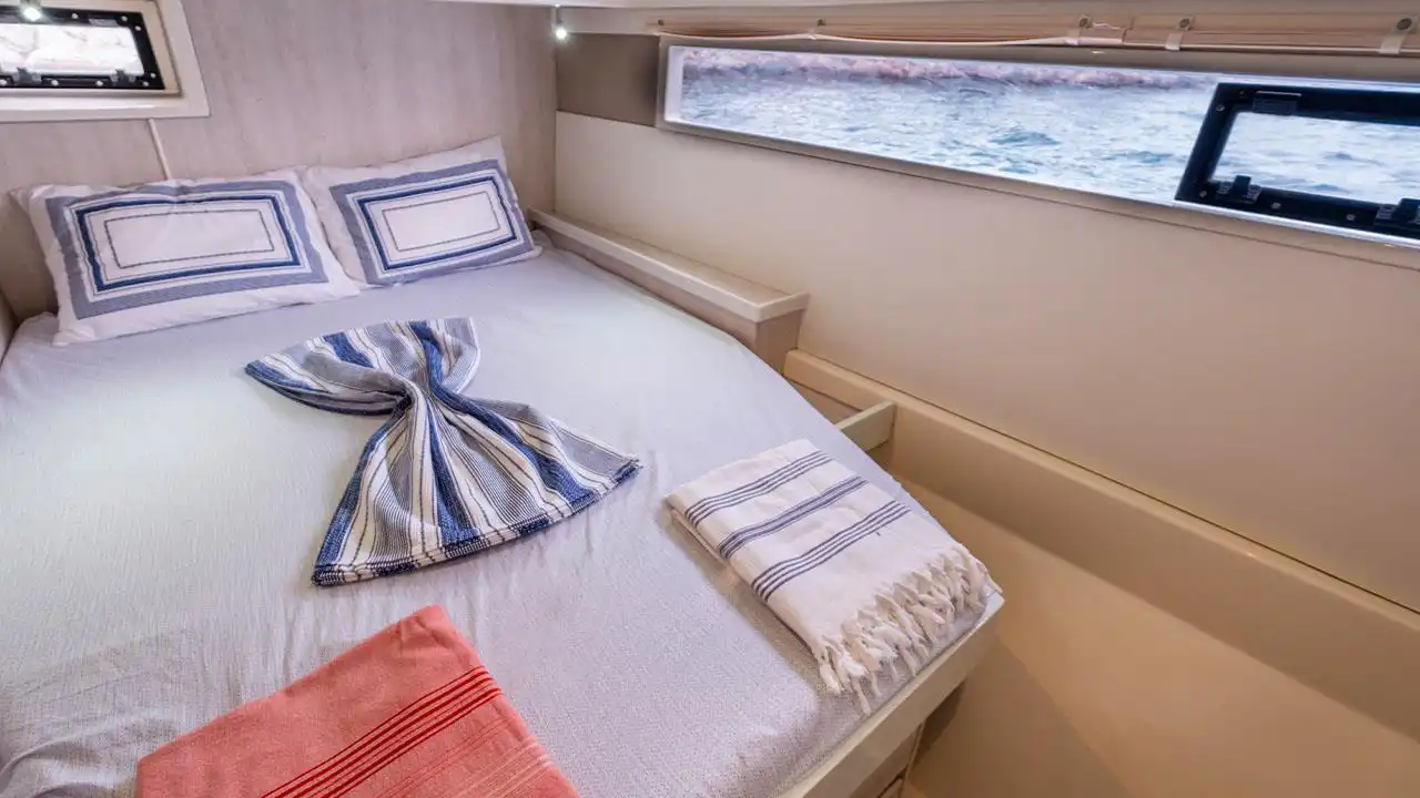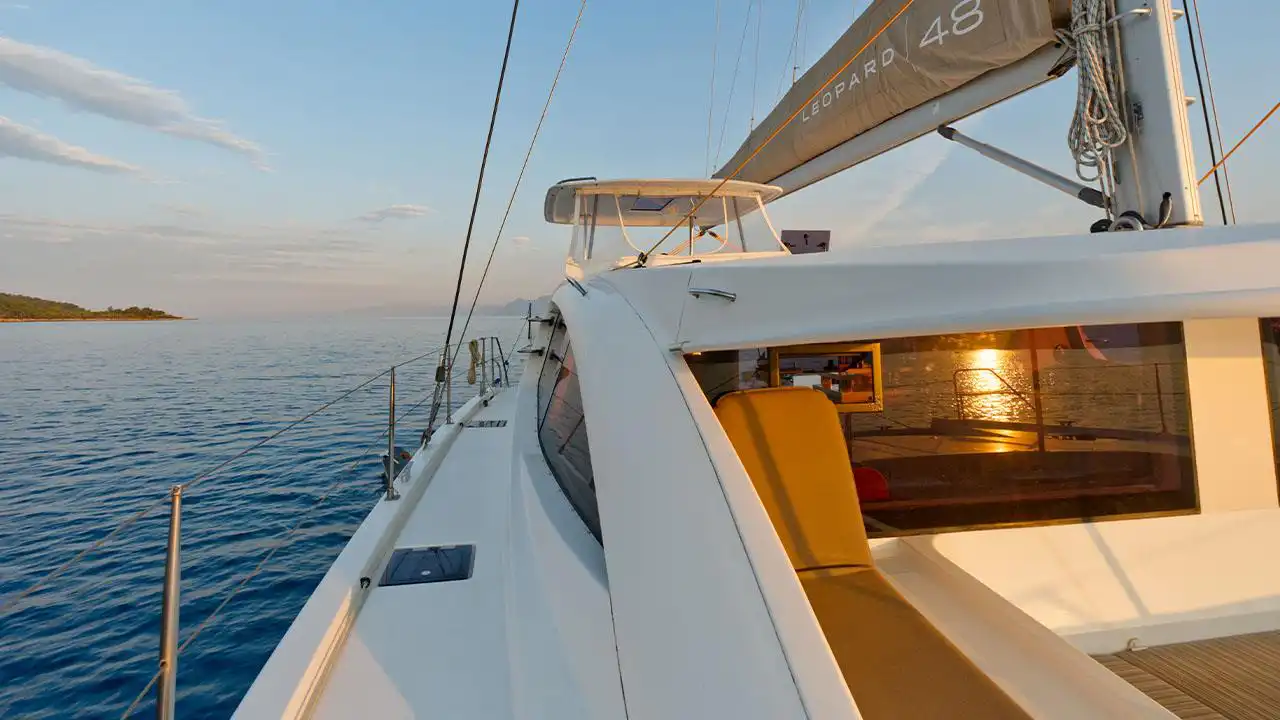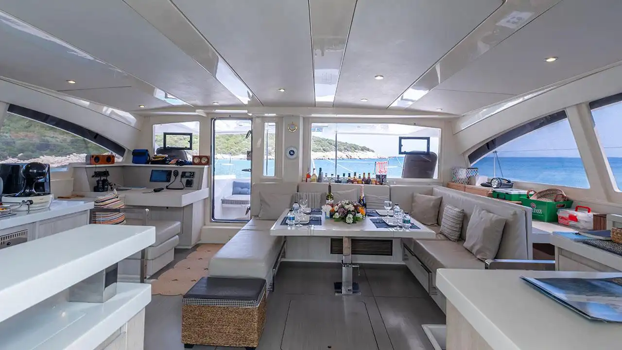 2018 model Leopard 48 katamaran ile Bodrum'un en güzel koylarını keşfedin. 15 metre uzunluğunda ve 8 metre genişliğindeki bu geniş katamaran, 2 double ve 1 VIP kabin ile 6 kişiye konaklamalı, günlük turlarda 12 kişiye kadar hizmet vermektedir. Fiyata mürettebat hizmeti, temiz yatak takımları, misafir sigortası, yemek ve alkolsüz içecekler dahildir. Gündüz turunda Meteor Mağarası, Poyraz Akvaryum Koyu, Dalgıç Koyu ve Tavşan Koyu rotası izlenir. Akşam turunda ise Bodrum Kalesi manzarası, Akvaryum'da yüzme ve ünlü Bodrum günbatımı keyfi yaşanır. Kaptan, hostes ve gemiciden oluşan 3 kişilik mürettebat Türkçe, İngilizce ve Rusça hizmet vermektedir. Giriş 09:30, çıkış 16:00'dır.