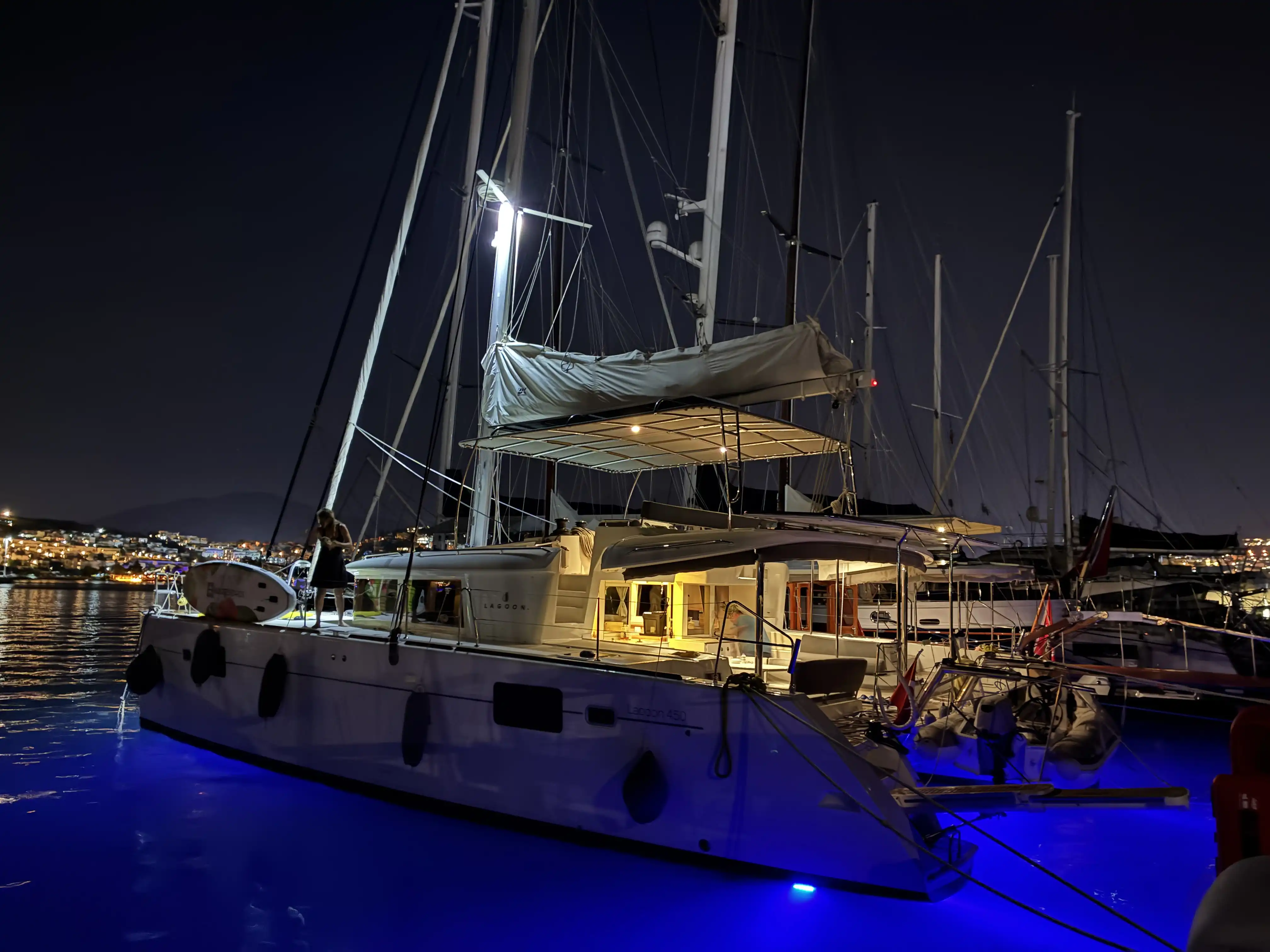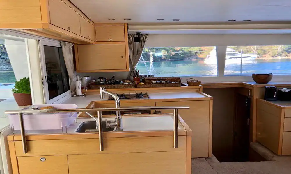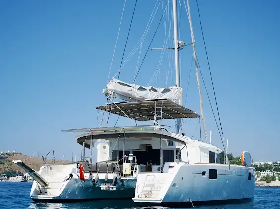 Bodrum'un eşsiz koylarını keşfetmek için 15 metrelik lüks katamaranımız ile unutulmaz bir günübirlik tekne turuna çıkın. 3 kabinli bu teknede 6 kişiye kadar misafir ağırlayabilir, Bodrum'un turkuaz sularının tadını çıkarabilirsiniz. ☀️