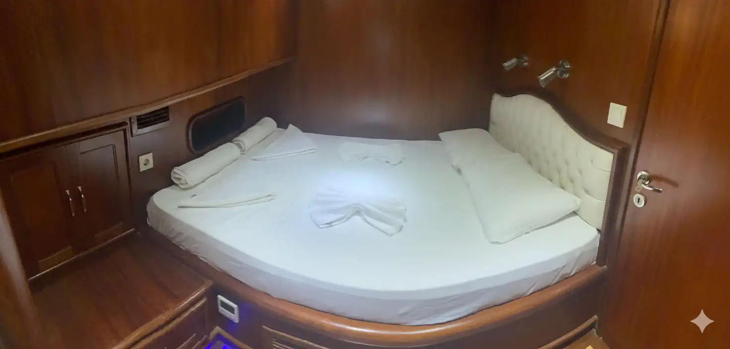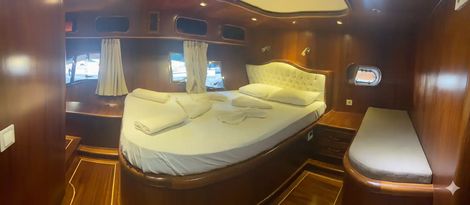 Kalabalık gruplar ve çocuklu aileler için mükemmel çözüm! Bu 26 metrelik gulet, 7 kabinli yapısıyla 16 kişiye kadar konaklama imkanı sunar. Hisarönü ve Yeşilova körfezlerinde yakıt fiyata dahildir.