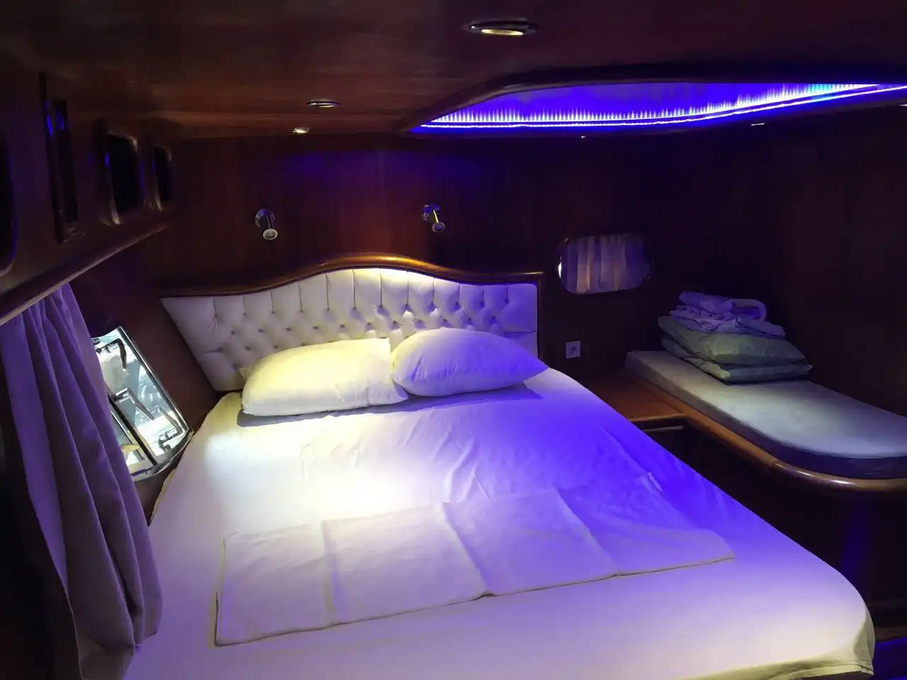 Tekne aynı zamanda sezon dışı veya son dakika rezervasyonları için gece konaklamasız tam gün kiralanabilir