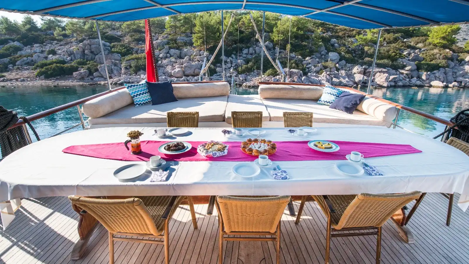 Tekne aynı zamanda sezon dışı veya son dakika rezervasyonları için gece konaklamasız tam gün kiralanabilir