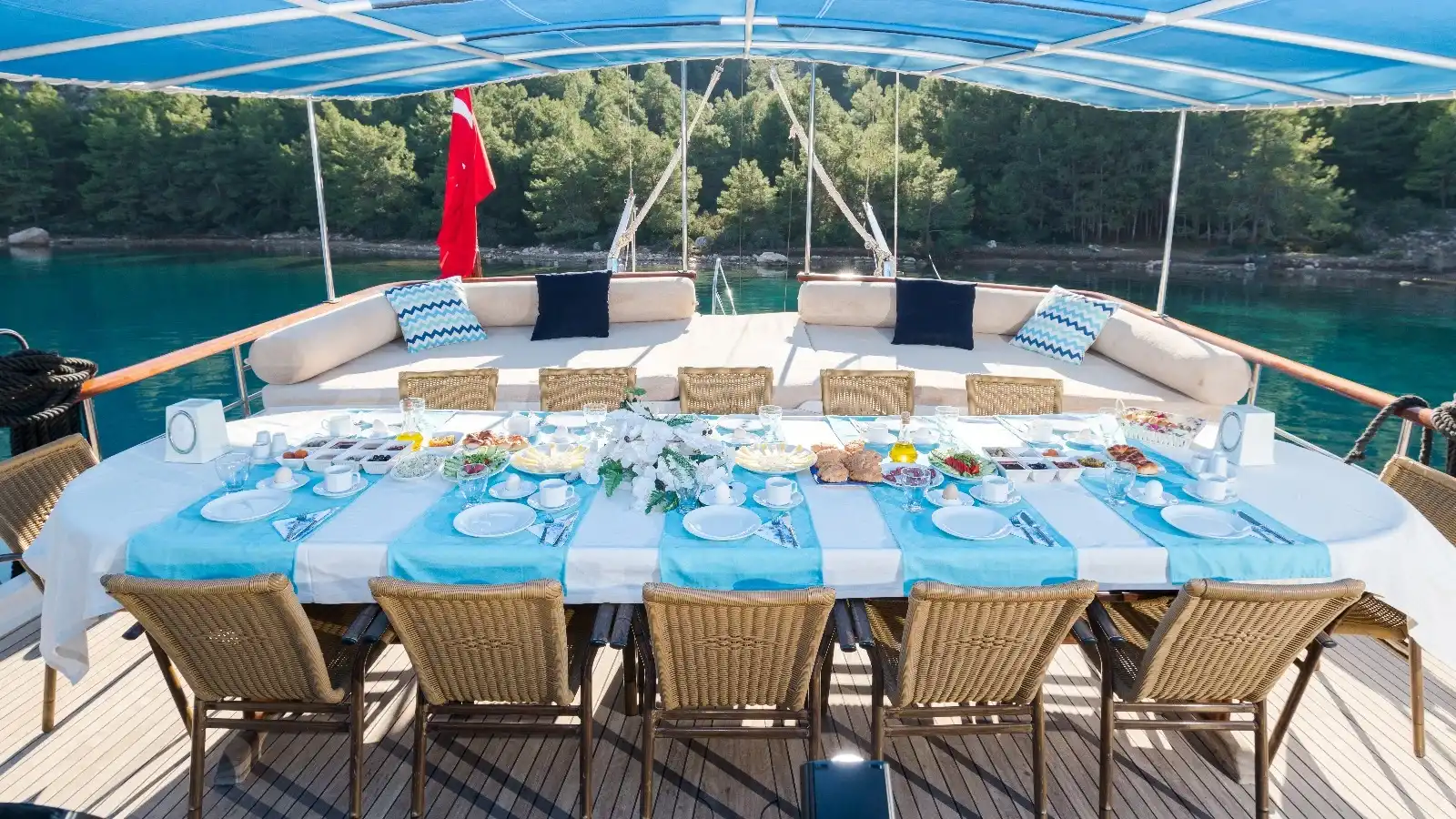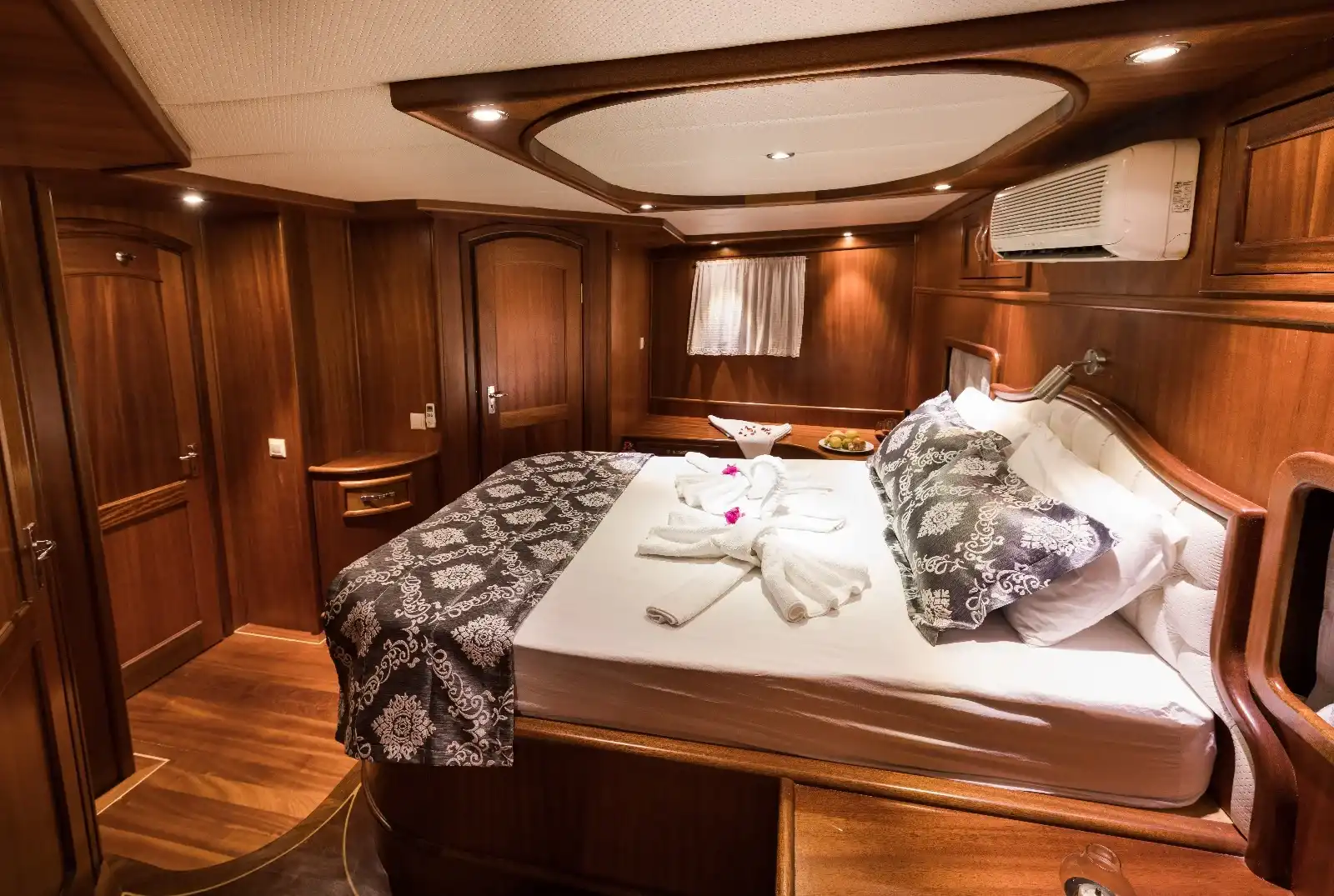 Bozburun çıkışlı bu 26 metrelik tekne, standart 6 kabinli yapısı ve temel konfor donanımlarıyla (Wi-Fi, TV) Hisarönü hattında rahat bir mavi yolculuk sunar. 12 kişiye kadar misafir ağırlar.