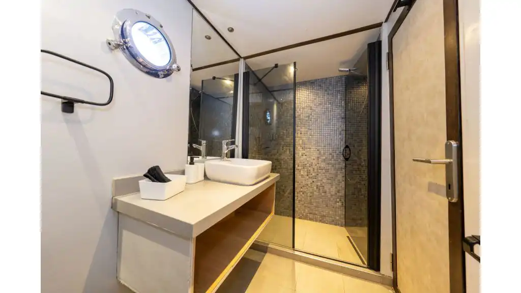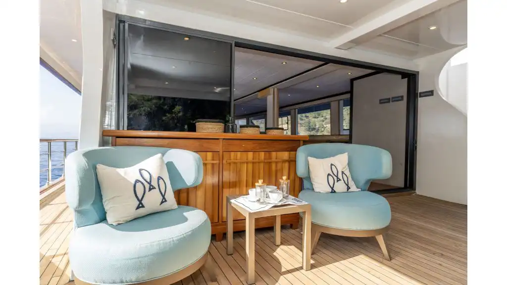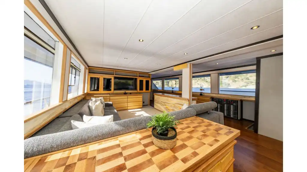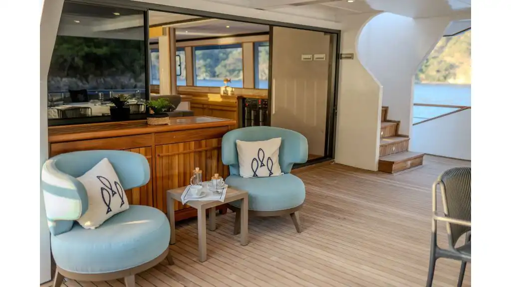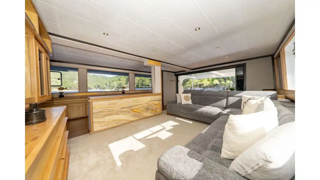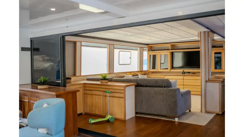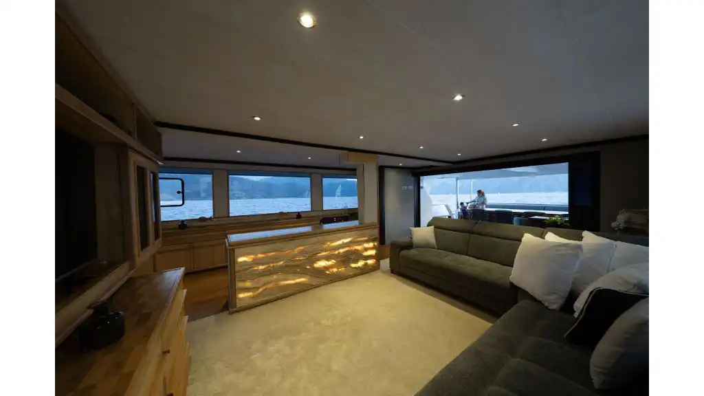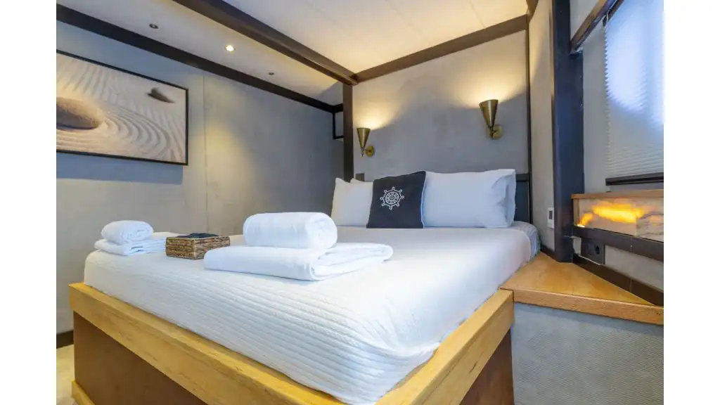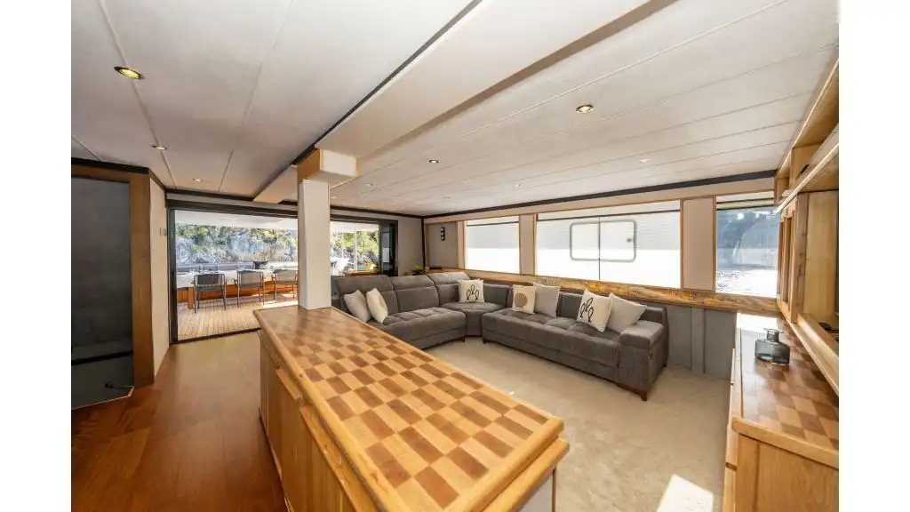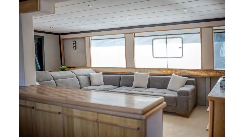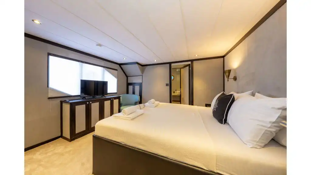 12 misafir kapasiteli bu teknenin en dikkat çeken özelliği, giriş katında (ana güverte) bulunan ferah Master Kabinidir. Bu sayede merdiven kullanımı gerektirmeden panoramik manzaralı lüks bir konaklama sunar.