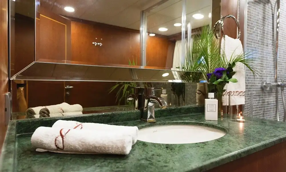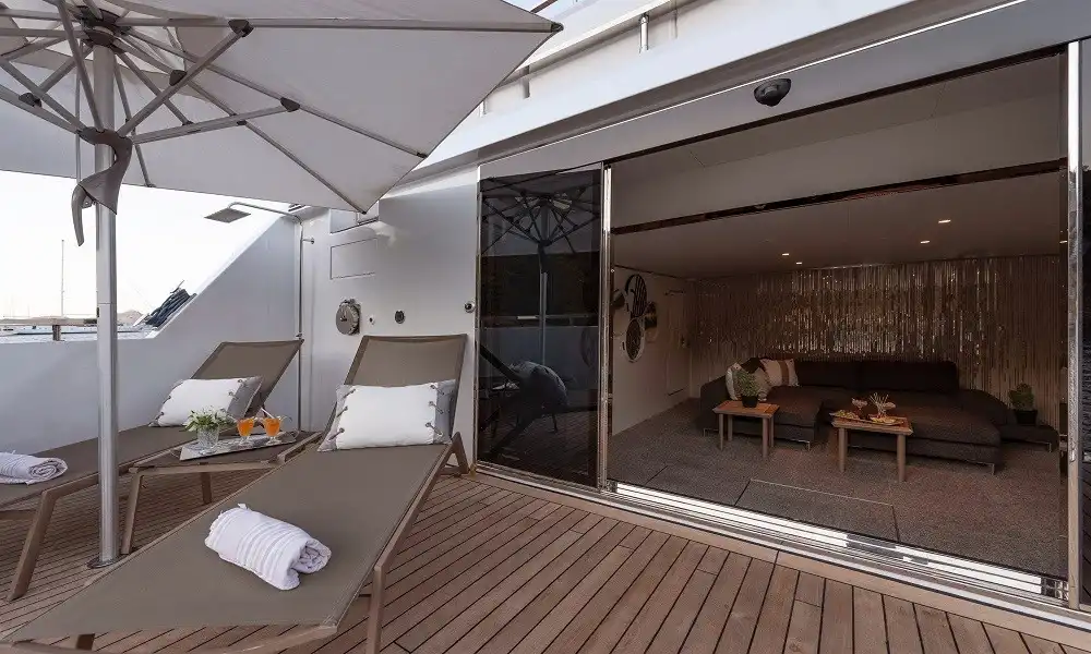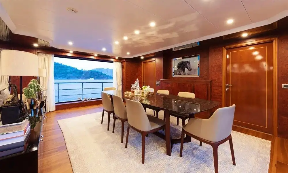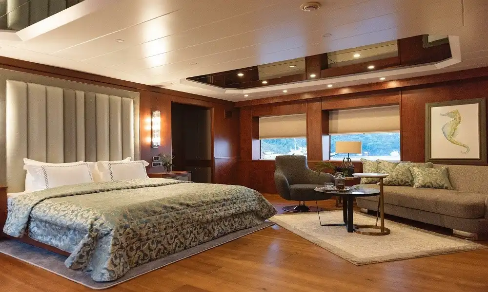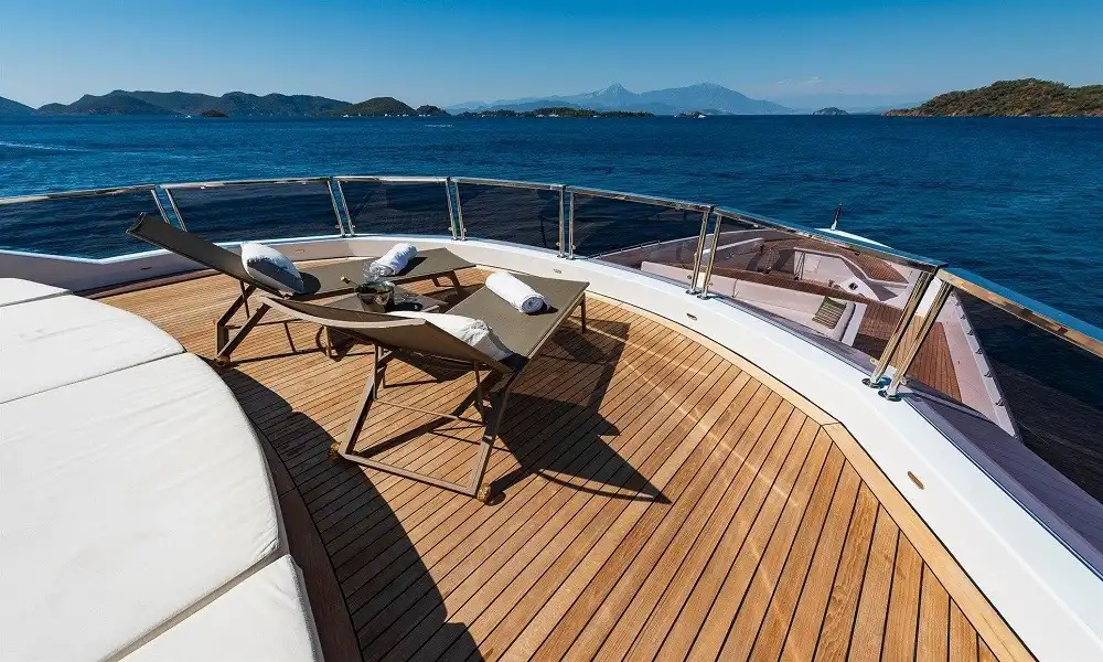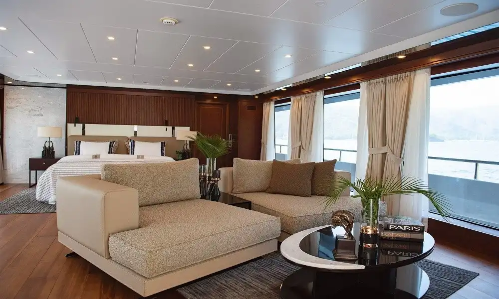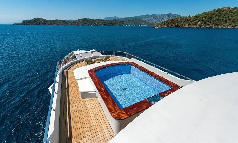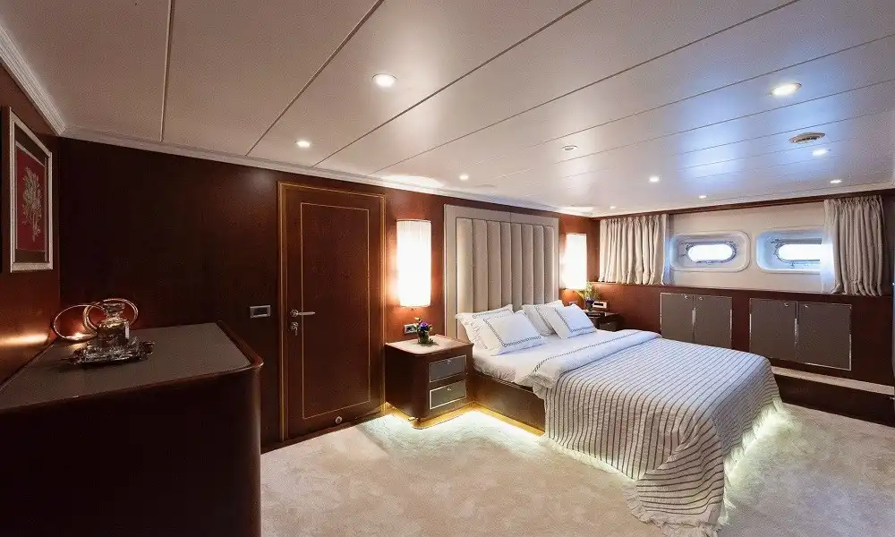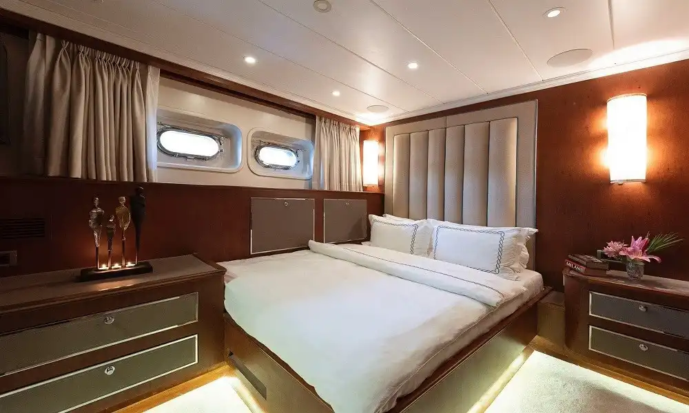 Yüksek konfor ve tam servis arayan gruplar için tasarlanan bu 44 metrelik süper yat, 6 kabin yapısı ile 12 kişiye kadar konaklama sağlar. Misafir konforu için 11 kişilik profesyonel ekip (neredeyse birebir hizmet) ile premium bir mavi yolculuk deneyimi sunar.