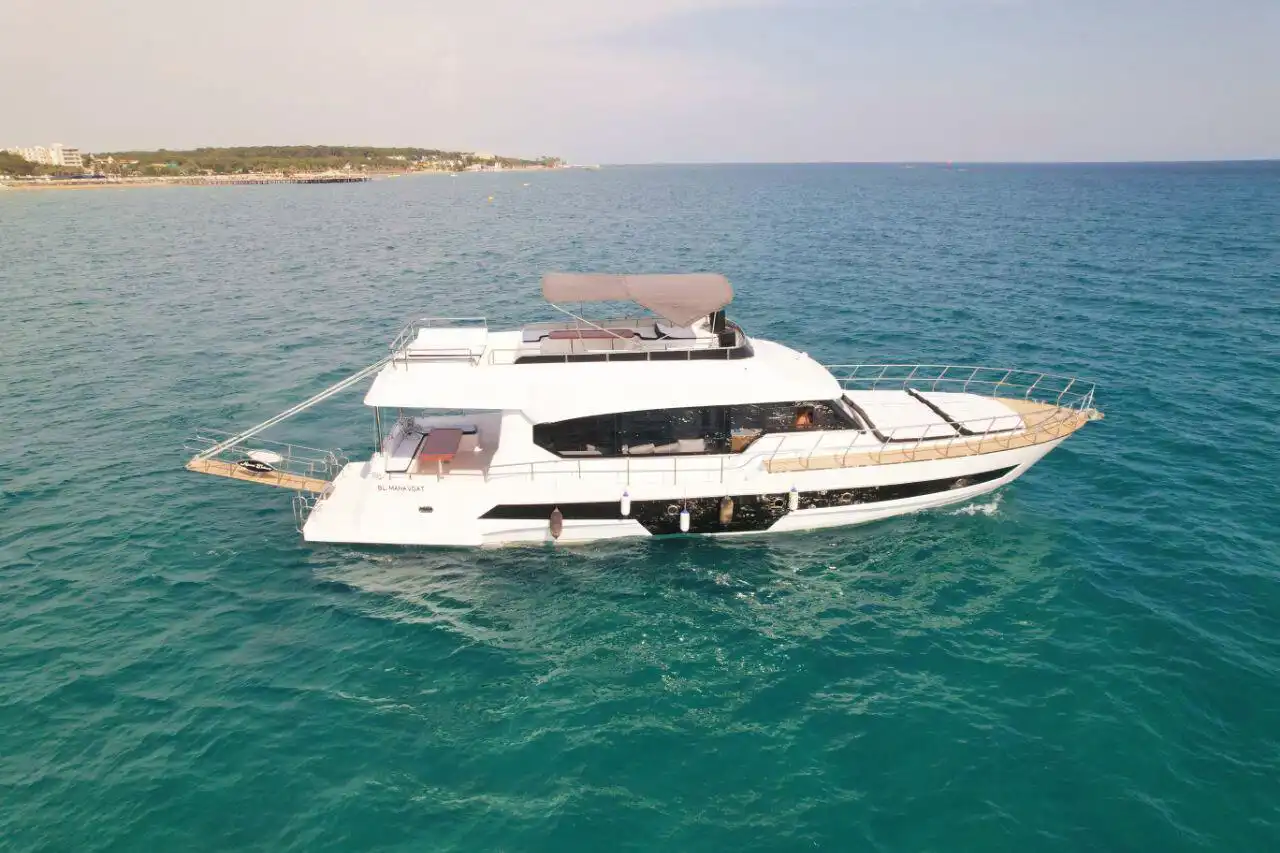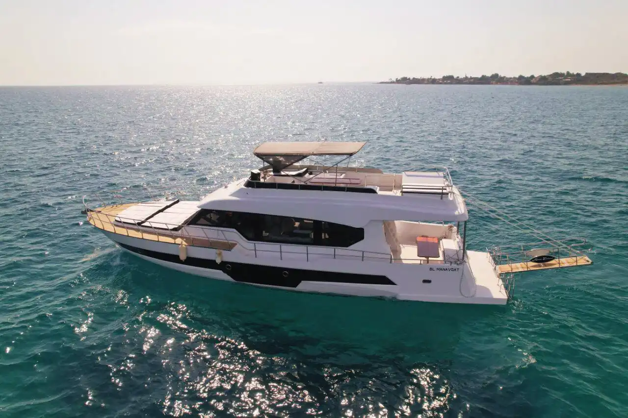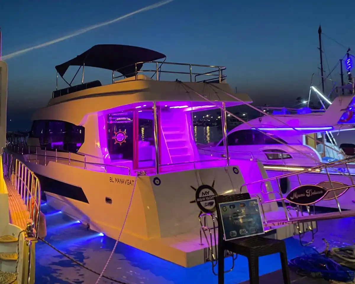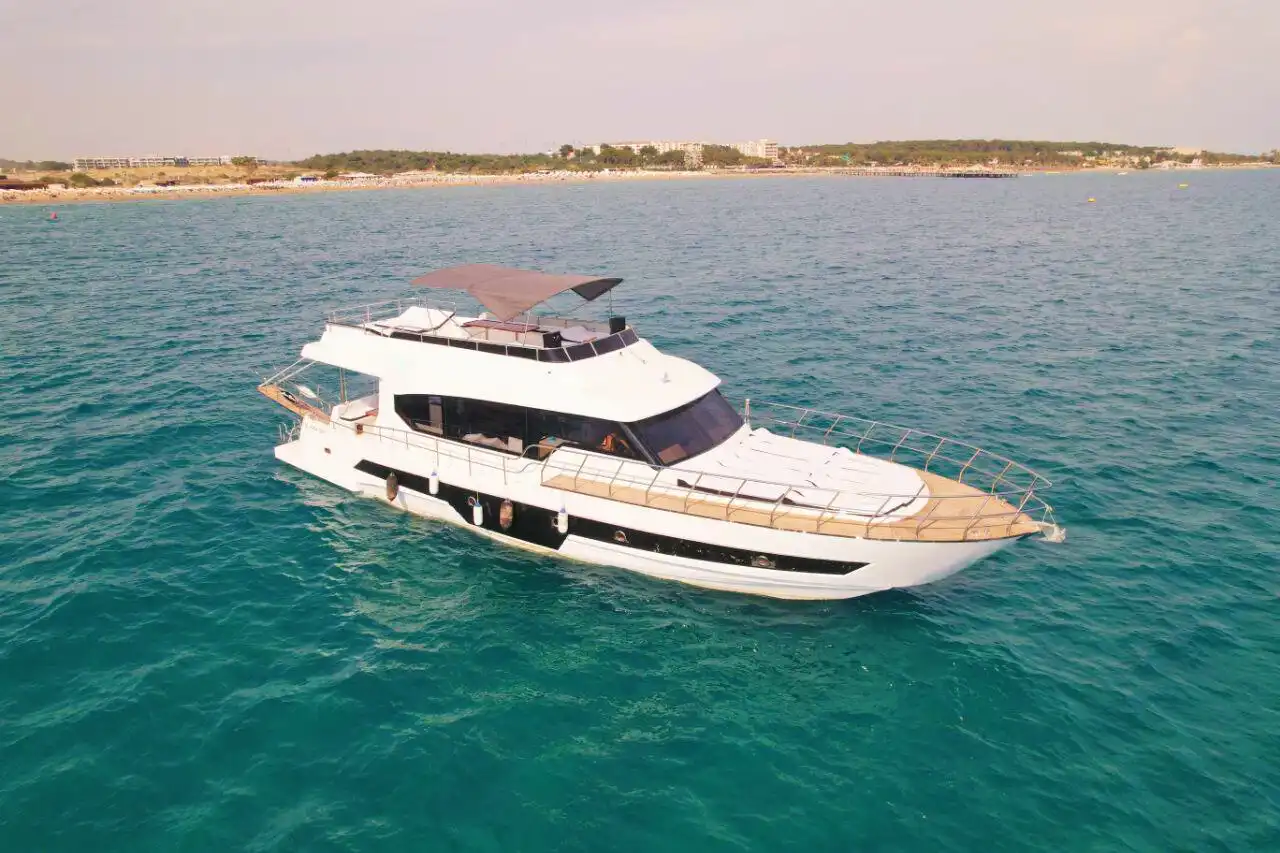 Antalya Side’de büyük gruplar için ideal olan 35 kişilik özel yapım motoryat, lüks ve eğlenceyi bir araya getiriyor! Doğum günü partileri, bekarlığa veda kutlamaları ve iş toplantıları için mükemmel bir ortam sunan bu teknede, müzik sistemi, barbekü ve güneşlenme yatakları gibi birçok imkan bulunuyor. Güverte duşu ve yüzme platformu sayesinde denizin tadını çıkarabilir, konforlu bir deniz turu yapabilirsiniz. Turkuaz suların keyfini çıkarmak için şimdi rezervasyon yapın!