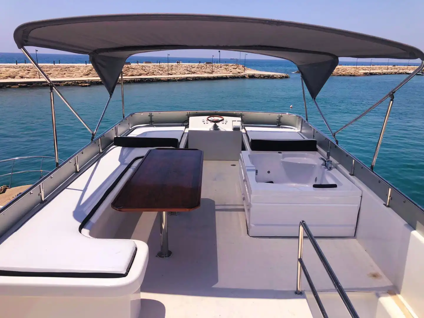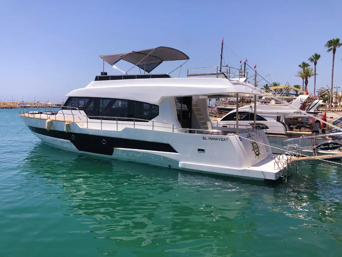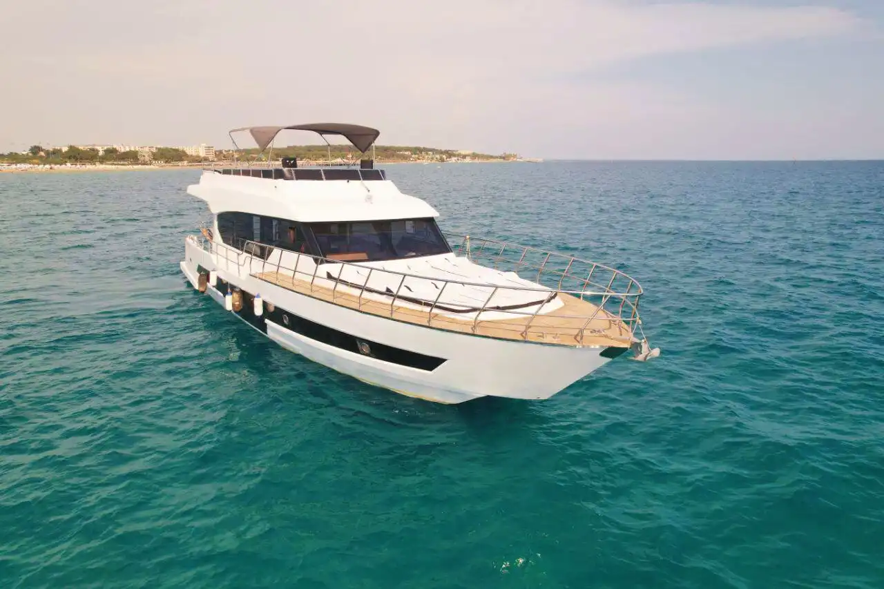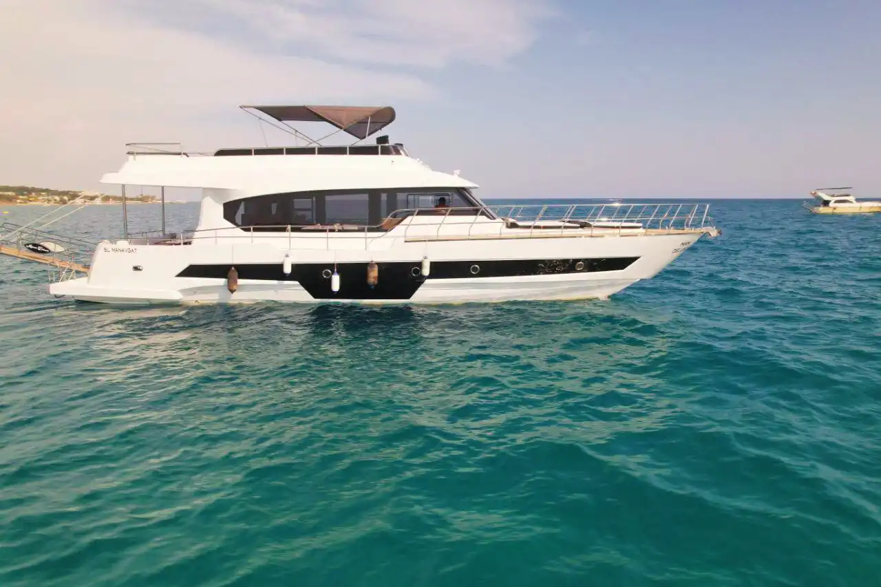 Antalya Side’de büyük gruplar için ideal olan 35 kişilik özel yapım motoryat, lüks ve eğlenceyi bir araya getiriyor! Doğum günü partileri, bekarlığa veda kutlamaları ve iş toplantıları için mükemmel bir ortam sunan bu teknede, müzik sistemi, barbekü ve güneşlenme yatakları gibi birçok imkan bulunuyor. Güverte duşu ve yüzme platformu sayesinde denizin tadını çıkarabilir, konforlu bir deniz turu yapabilirsiniz. Turkuaz suların keyfini çıkarmak için şimdi rezervasyon yapın!